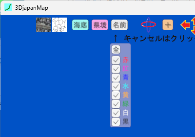 県境の表示・非表示 メニューの (例) 県境を表示したようす。 |